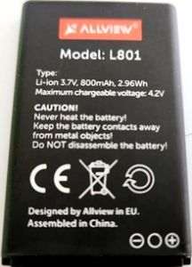 Оригінальна акумуляторна батарея Allview (L801) 800mAh Li-ion. Підходить до Allview M8 Join, M9 Join, M7 Stark, M8 Stark, D1 Senior, D2 Senior, D3 Senior, D1 Flip, M2i Chroma, M9 Connect, L2 Fit, L3 Cheer, L4 Class, L5 Lite, L5 Easy, L6, L7 Full, L8, L8 Duo, L801. Гарантія 6 месяців, доставка по Україні та СНГ.