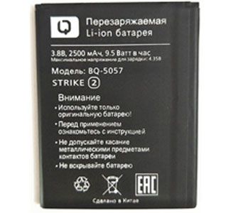BQS (BQ-5057) 2500mAh Li-ion, оригінал. Відповідність: BQS BQ-5057 Strike 2, BQ-5204 Strike Selfie, BQ-5500L Advance, BQ-5508L Next LTE, BQ-5520L Silk, BQ-5522 Next, BQ-5518G Jeans, BQ-5 . Розміри: (77 х 60 х 4мм) крайній контакт (-)4,5мм. Гарантія 6 місяців, доставка по Києву та Україні. Є доставка до країн СНД.