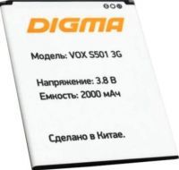 Digma (Vox S501) 2000mAh Li-ion, оригінал. Відповідність: Digma Vox S501 3G, VS5002PG. Гарантія 6 місяців, доставка по Києву та Україні. Є доставка до країн СНД.