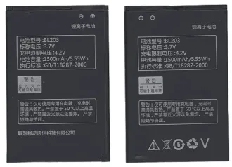 Lenovo (BL203) 1500mAh Li-ion 5.5Wh, оригінал. Відповідність: Lenovo IdeaPhone A369, A66, A278t, A365E, A308t, A278T. Гарантія 6 місяців, доставка по Києву та Україні. Є доставка до країн СНД.