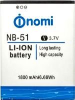 Nomi (NB-51) 1800mAh Li-ion, 6.66Wh оригінал. Відповідність: Nomi i500, i500 sprint. Розміри: 76 х 58 х 3,5 мм. крайній (+) 12,5 мм. Гарантія 6 місяців, доставка по Києву та Україні. Є доставка до країн СНД.