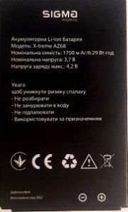 Оригінальна акумуляторна батарея Sigma (X-treme AZ68) 1700mAh Li-ion, оригінал. Підходить до Sigma X-treme AZ68. Гарантія 6 месяців, доставка по Україні та СНГ.
