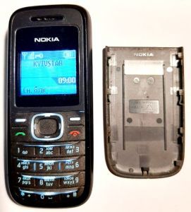 Кнопковий телефон Nokia (1208) оригінал. Екран кольоровий, колір телефону чорний, Б/У, в гарному стані, що працює, в комплекті: батарея Nokia (BL-5CA), зарядний пристрій (СЗУ) Nokia ACP-7E.